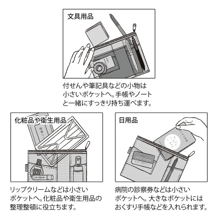 The Pen & Tool Pouch from Midori is a lightweight, semi-transparent pouch designed for organising writing tools and small accessories.