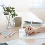 Crafted with a slender shaft that is comfortable to hold, and rounded front and rear ends, the pen provides a seamless writing experience. The simple and elegant gray-white color of the pen body allows it to effortlessly blend in with your belongings.